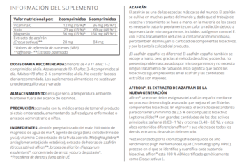 *estandarizado por la cromatografía de líquidos de alto rendimiento (High Performance Liquid Chromatography, HPLC), proceso en el que se identifica y cuantifica cada sustancia bioactiva. affron® está 100 % ADN certificado genéticamente como Crocus sativus L.
